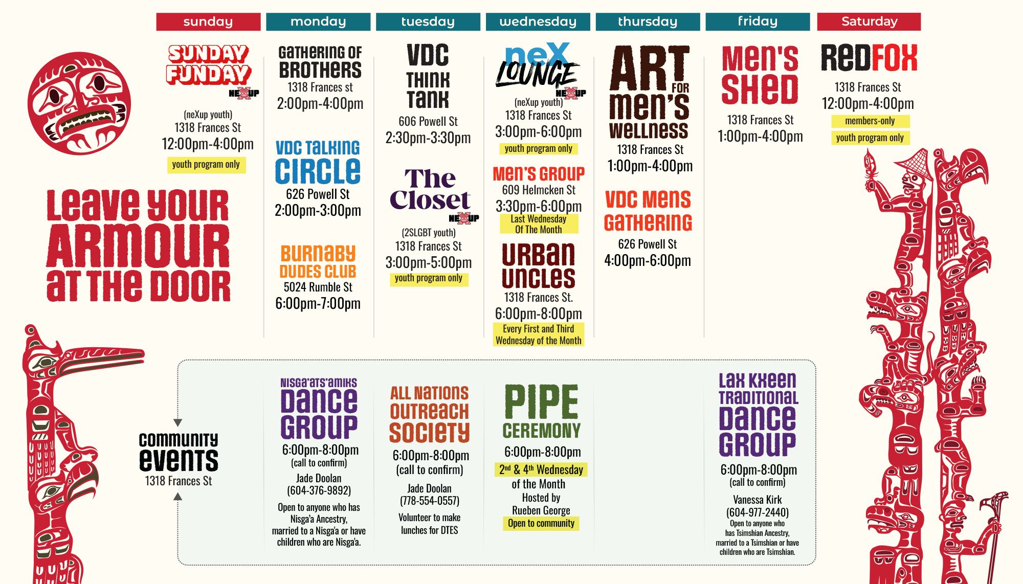 DUDES Club provides space to facilitate a participant-led community for men’s health and wellness. We do this through different events prioritizing supportive relationships, engagement in health care, and Indigenous world views.